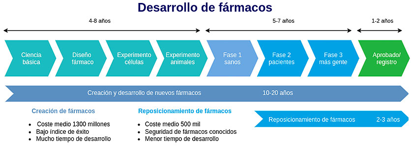 El reposicionamiento de fármacos es una técnica innovadora en la investigación farmacéutica que consiste en dar nuevos usos a medicamentos ya existentes. Una gran ventaja de esta práctica es poder utilizar fármacos para enfermedades distintas a las que generalmente son aplicadas, reduciendo significativamente el coste y riesgo asociado a la creación de nuevos medicamentos desde cero.